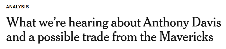 一位联盟高层消息人士表示:“东部的每支球队都认为,只要得到安东尼-戴维斯,他们就有机会杀入总决赛。”